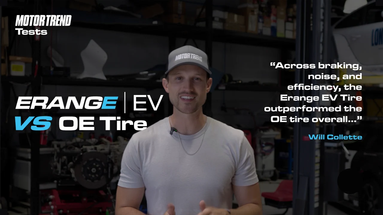 Watch the MotorTrend Testing Team independently evaluate ERANGE EV tires against a Tier-1 OEM tire under real-world conditions.